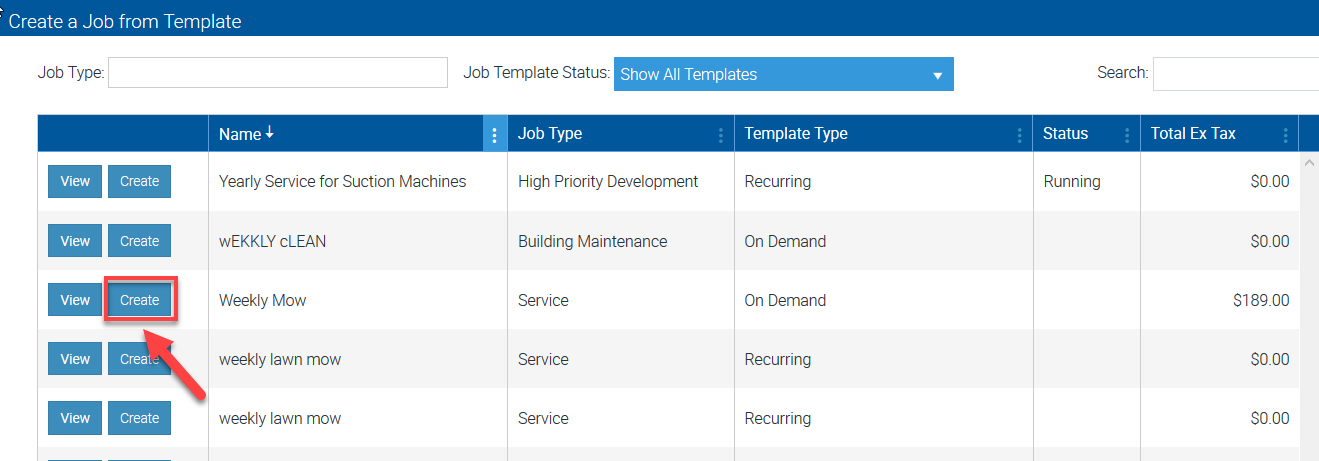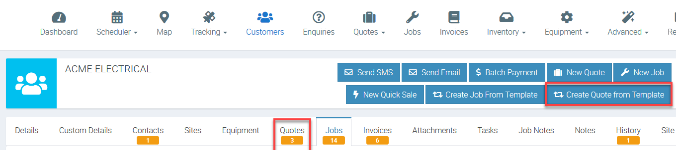 When you have job templates set up, you are able to create a quote from one of the templates.