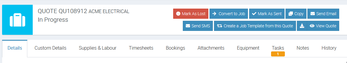 4. Wait for the system to create the quote and once done, you should see the main Quote screen where you can make amendments such as adding supplies and adding labour if necessary.