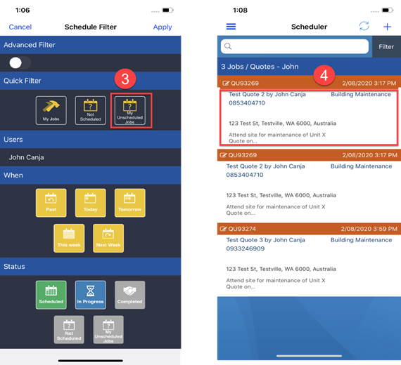2. Tap on My Unscheduled Jobs and choose from the list and tap it to show more details.