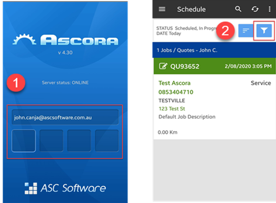 1. Log in to the Mobile App by entering your User email address and assigned Pin Code and tap on the Funnel icon on the upper right.