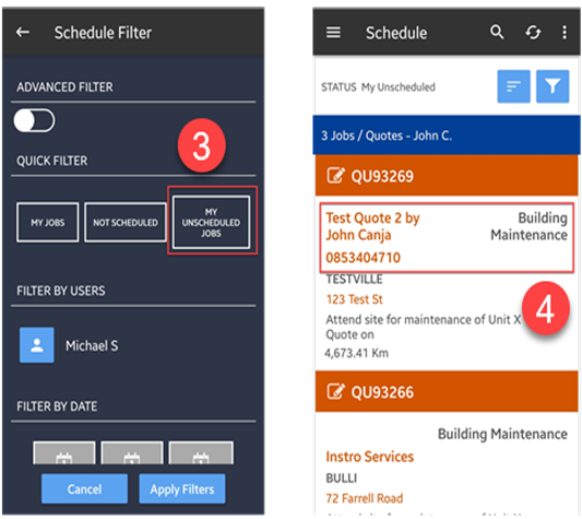 2. Tap on My Unscheduled Jobs and choose from the list and tap it to show more details.