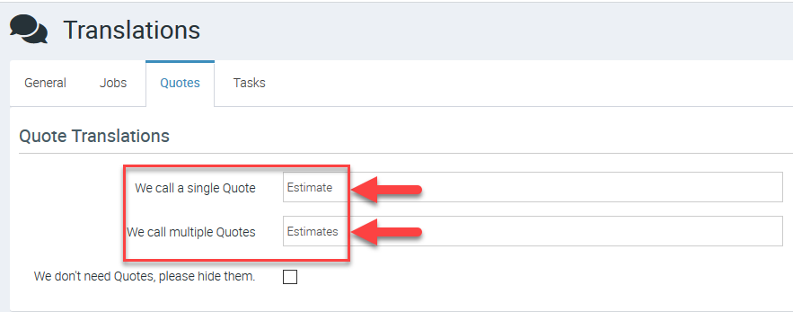Depending on the industry or type of business you run, you may use different terms across various areas of your operations. For example, you might refer to your customers as clients, your quotes as estimates, or your supplies as materials. Ascora’s Translations feature allows you to easily customize these terms to suit your business language, ensuring consistency across the platform. Additionally, you can hide any irrelevant fields to simplify your workflow and tailor the system to your specific needs. This flexibility helps you create a more intuitive and personalized experience as you manage your business with Ascora.