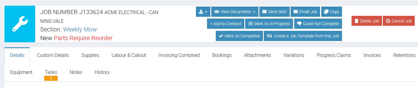 3. Wait for the system to create the job and once done, you should see the main Job screen where you can make amendments such as adding supplies and adding labour if necessary.