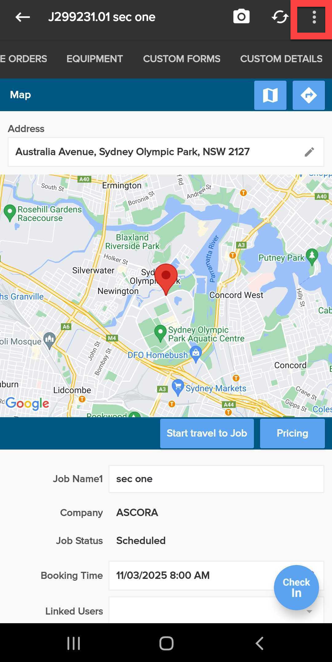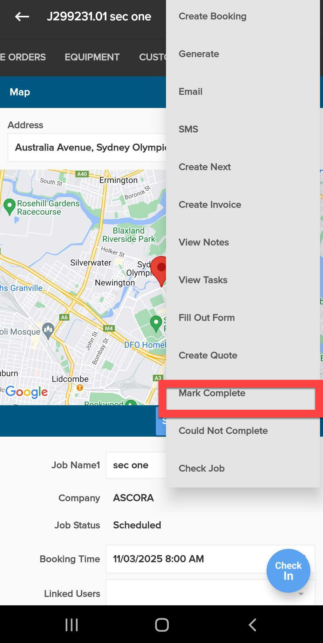 - Open the job you wish to complete in the Ascora Android app.