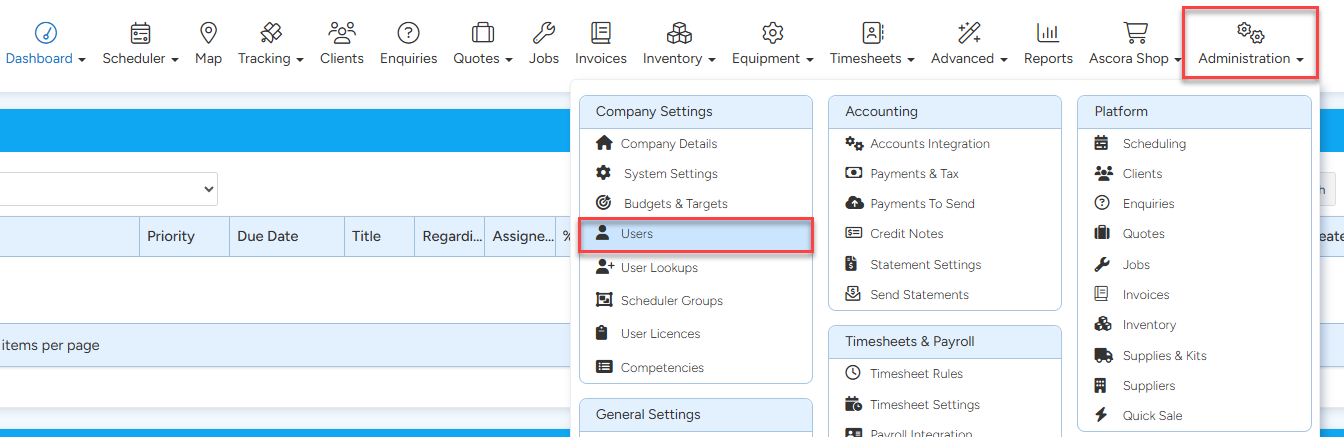 Go to Administration Then Users