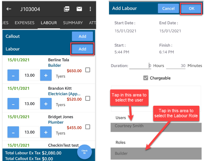 Adding Labour Charges from the Mobile App (Android)