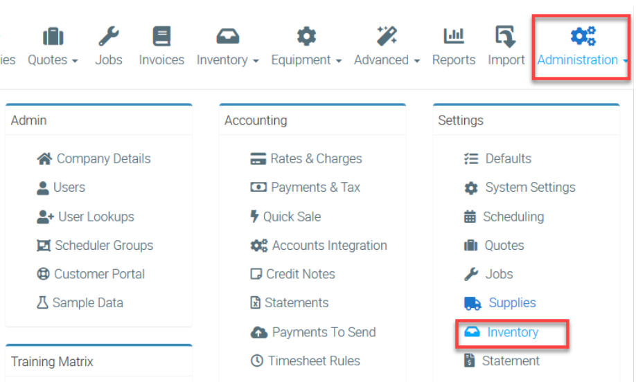 1. Go to Administration → Inventory.