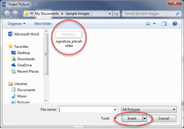 Click the Pictures icon. The Insert Picture pop-up window will display.