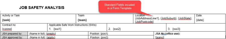 Standard Fields include information such as Job Number, Customer Name, Customer Address, etc. When you include Standard Fields in a Form Template, they will automatically populate from the data in Ascora when the Form is generated. This increases efficiency by saving the User having to enter information which is already available in Ascora.