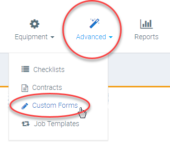 Log in to your Ascora Account. Select the Advanced icon from the Top Menu and choose the Custom Forms option. A list of all your Custom Forms will be displayed.