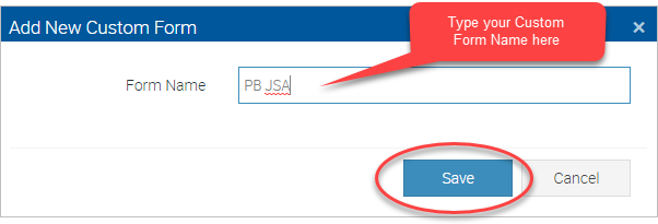 To create a new Custom Form, click the +Add New button. The Add New Custom Form pop-up window will display.