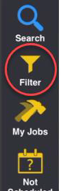 If no Jobs are showing in the list, tap the Filter icon on the Side Menu. The Filter options will display.