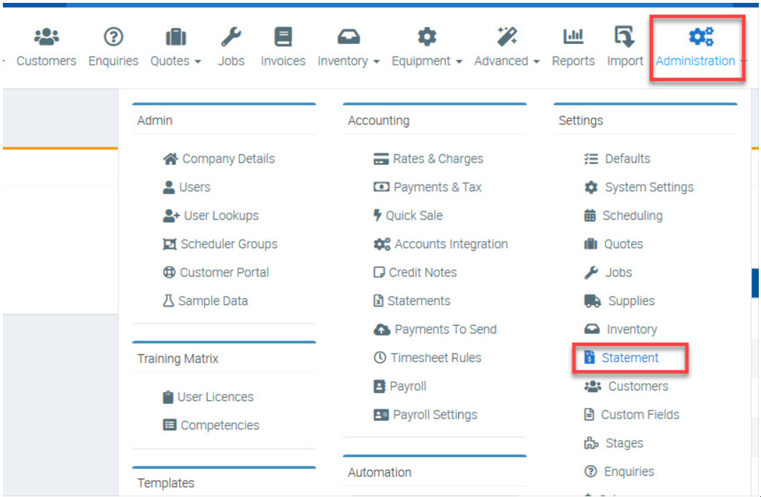 1. Go to Administration → and click Statement under Settings area.