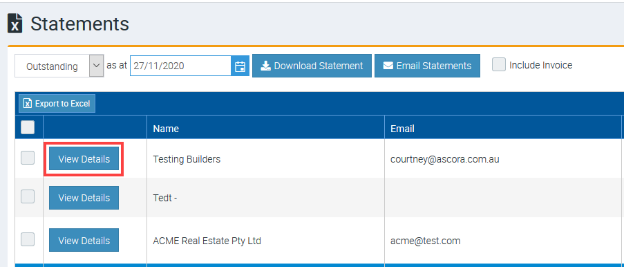 4. Click View Details beside the Customer name and click on Download Statement.
