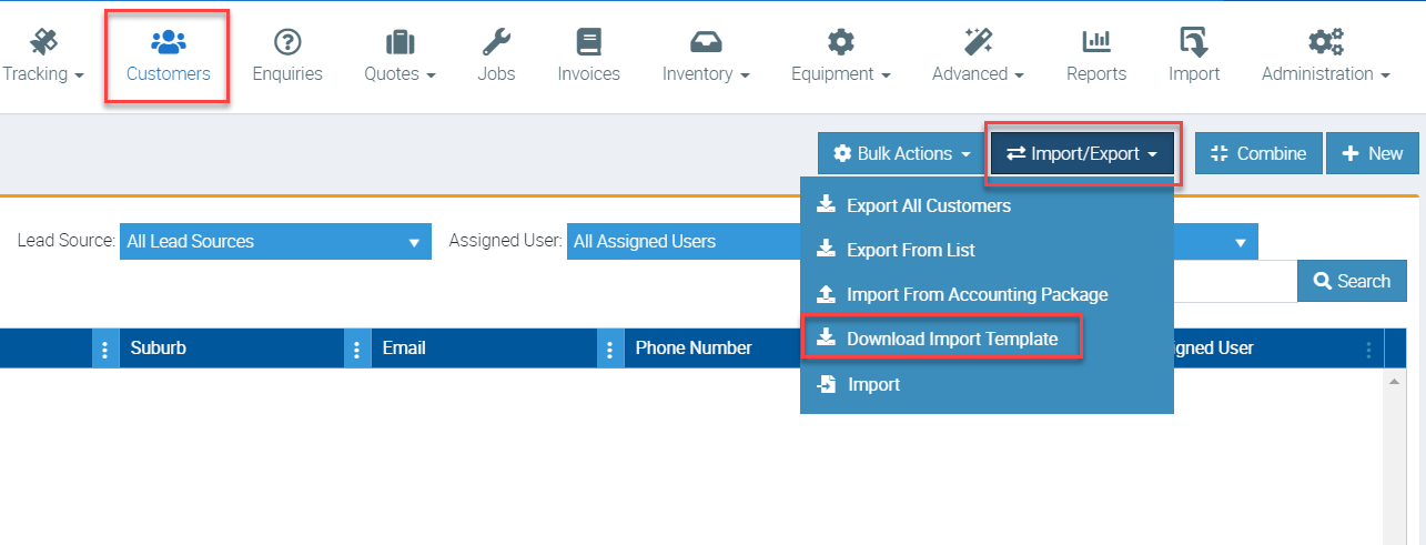 3. After adding all details, save your customer import template and go back to Customers→ Import/Export → but this time, click on Import.