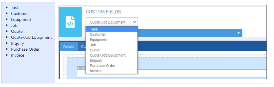 Depending on the industry or the type of business that you run, you may have additional set of information that you want to be shown on Job, Quote, Customer, Equipment, Purchase Order, or Invoice. The option to add your preferred information is made easy by using “Custom Field” feature.