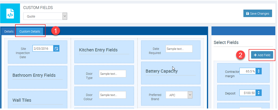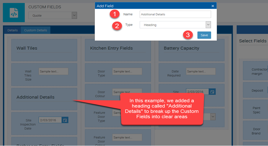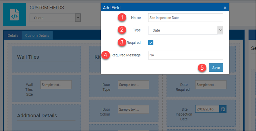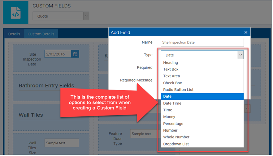 These custom fields will be shown on the app as well. Custom field created with the same name will flow from Enquiry to Quote to Job.