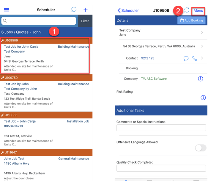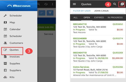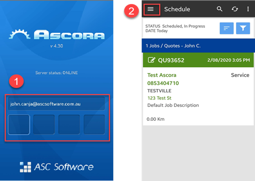 To test the newly created Custom Field, log in to the Ascora Mobile App on your phone or tablet. The screenshots below are based on the Android version of the Ascora Mobile App. This will work in a similar way on your iOS version of the Ascora mobile App. (Refer to page 15 for the iOS version)