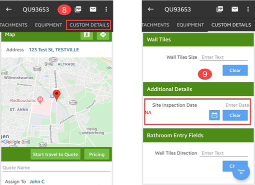 4. Tap Custom Details and you should see the newly added Custom Field called Site Inspection Date positioned under Additional Details heading.