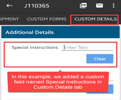 2. In the following example, we added a custom field called Special Instructions under Custom Details tab.