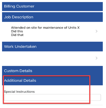1. Tap an existing job and you should see the newly added Custom Field right away. In this example, we added the custom field named Additional Tasks Completed under Details tab.