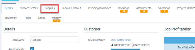 1. On the Job Details, choose the Supplies Tab.