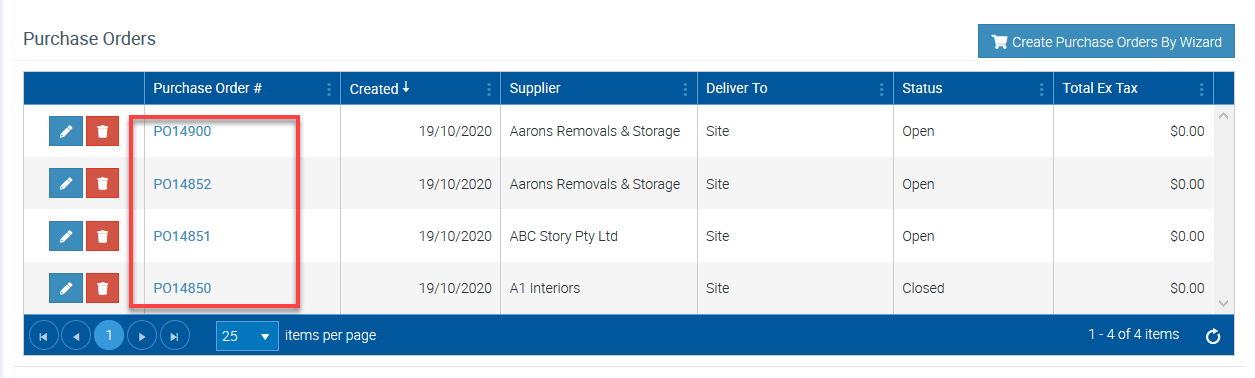 The relevant Purchase Order(s) is now displayed in the Purchase Orders List.