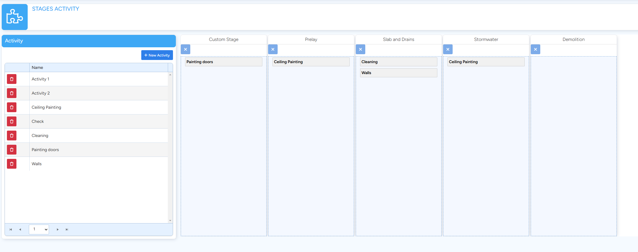 - Select the Activity assigned to a Stage then click the Delete button on the Stage.
