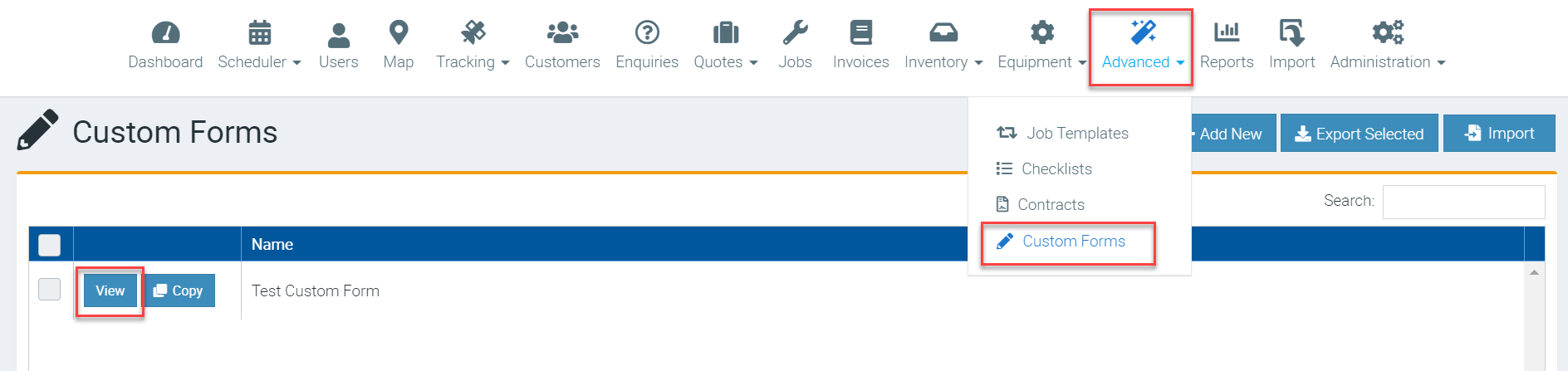 1. Download your custom form by going to Advanced → Custom Forms and click View beside the Custom Form Name which is basically the form that you need to update.