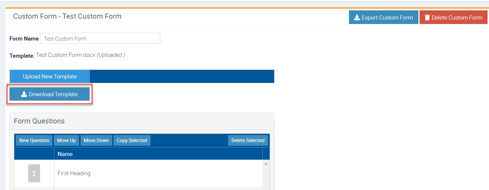 Downloading Custom Form Template
