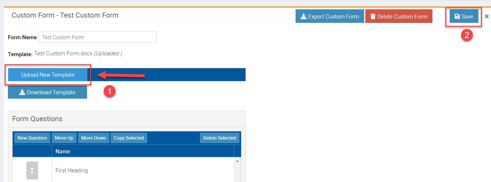 3. Go back to Ascora web Custom Form area and click Upload New Template then click Save.