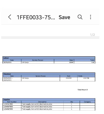 4. After generating the form, you should immediately see timesheet details and also labour and supply details if you've added them.
