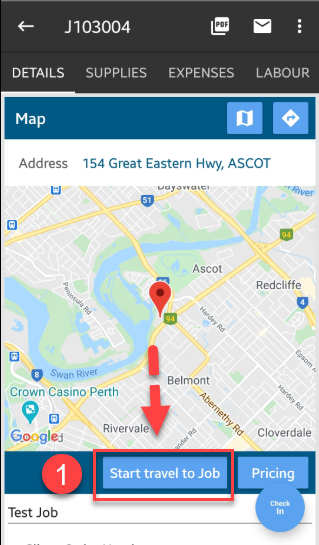 1. Access your job and tap Start travel to Job and tap YES when the prompt appears.