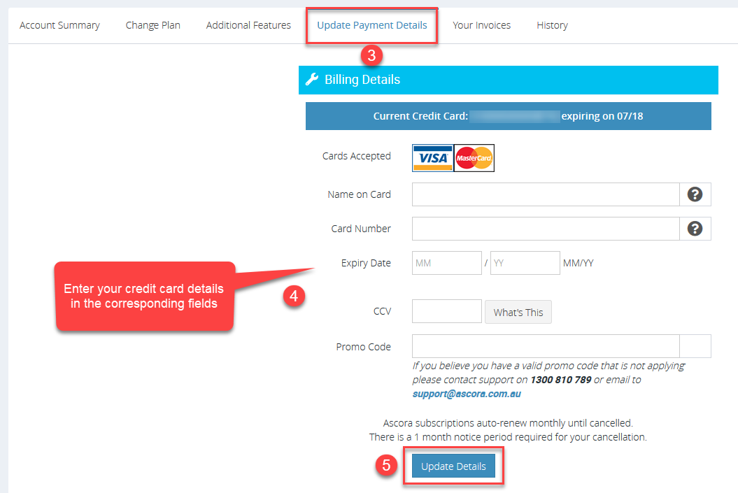 2. Click Update Payment Details and enter your credit card details.