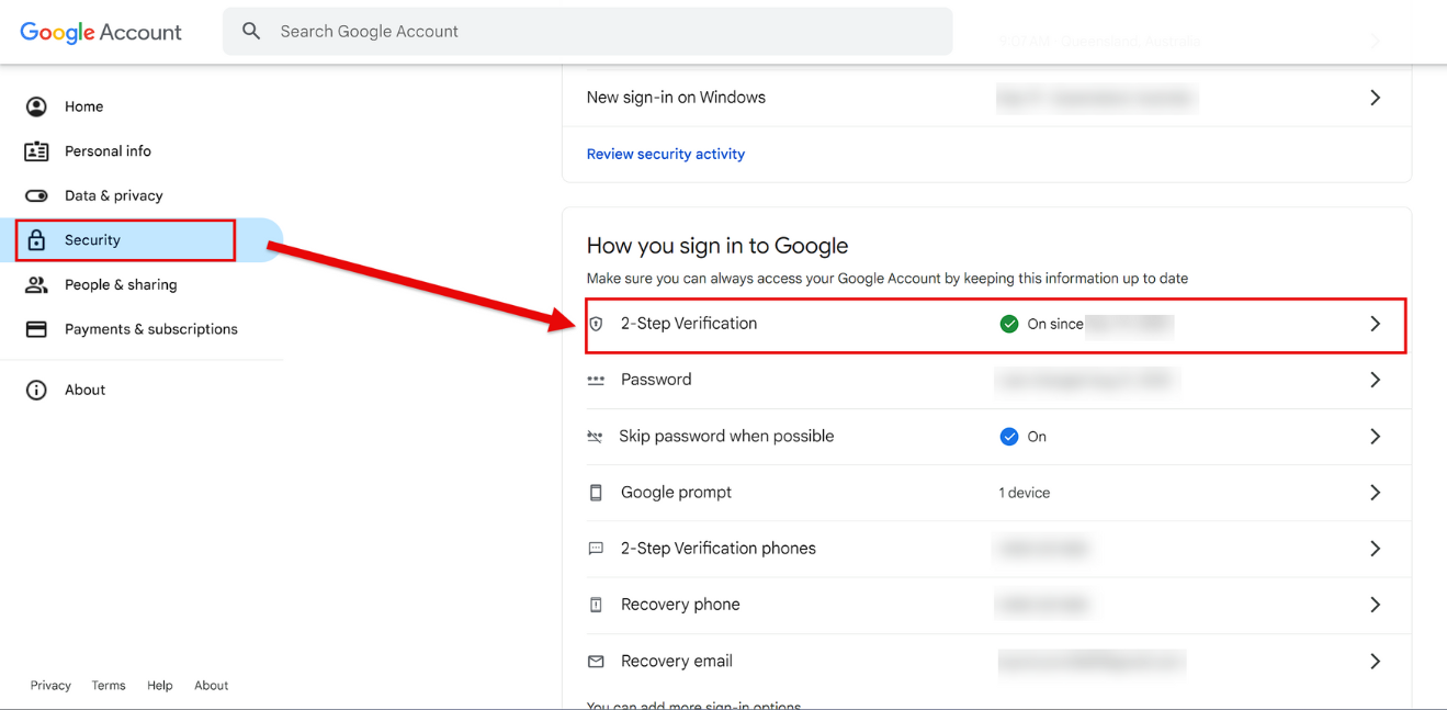 3. Once done, go back to the Google Account page and now the 2-Step Verification option should indicate that itās ON.