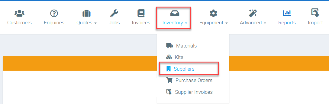 1.Ā Choose the Inventory Icon on the Top Menu and select the Suppliers option.