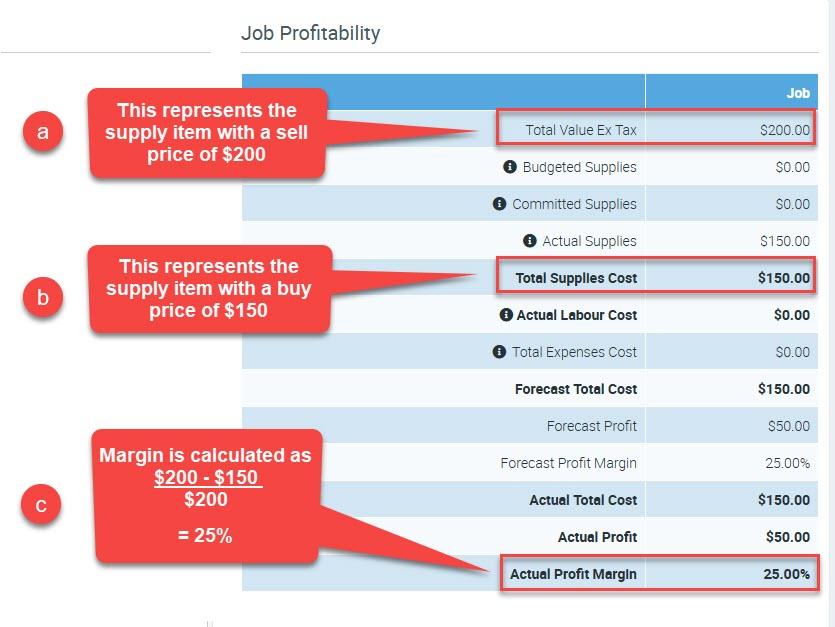 Using the same example, our Job Profitability will show exactly the same calculation as shown in the image below.
