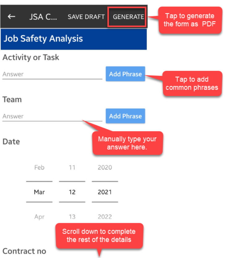 4. Once the custom form is displayed, enter the necessary details and once done, tap GENERATE and it will create the form as PDF.