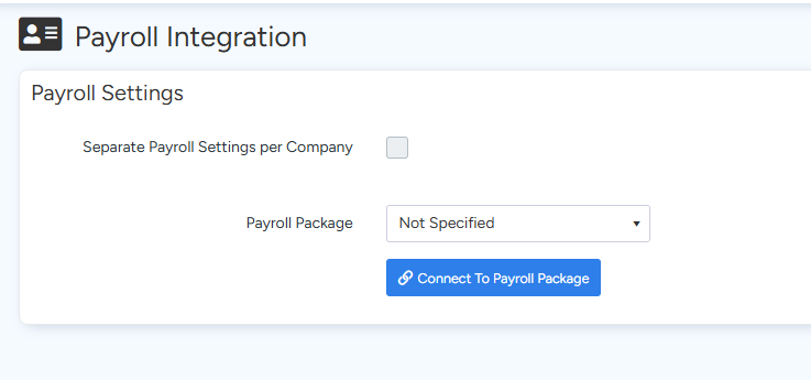 In the Payroll Settings tab, you can set up your payroll integration.