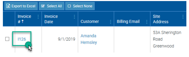 2. The Invoices List will display. Locate the applicable Invoice record and click the Invoice Number to view the Invoice Details.