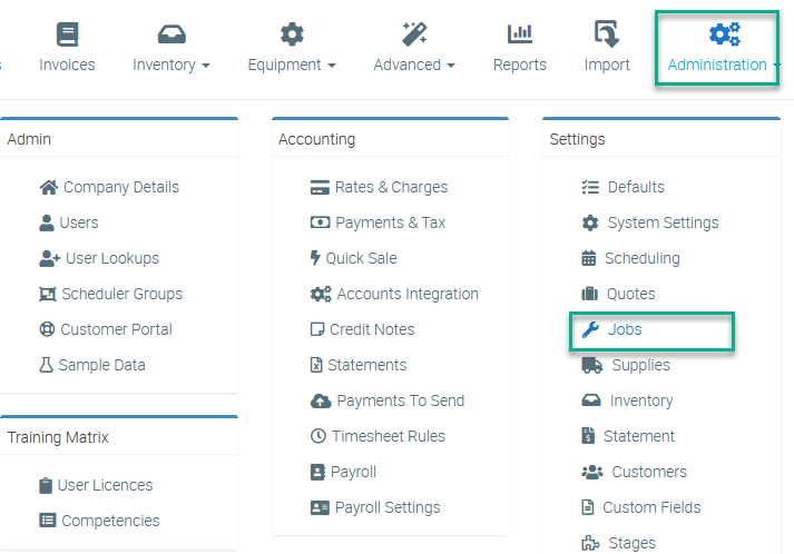 3. In the field Default Job Checklist, click the arrow and in this example, we select the checklist called Maintenance - Jobs.