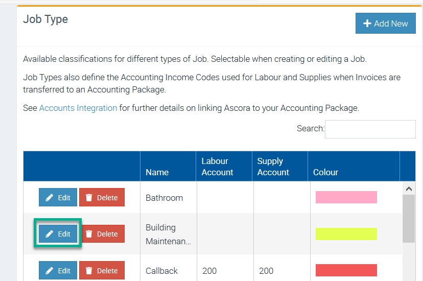 2. Click Edit beside the Job name where you want to set up a default checklist.