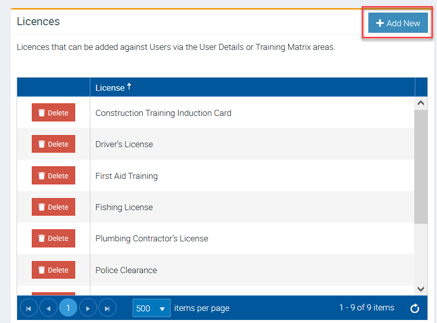 Adding Licenses