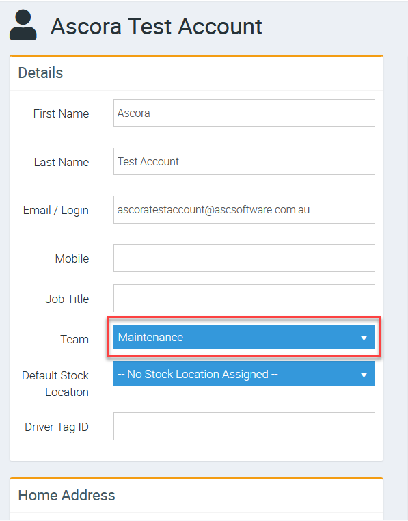 In the following example, we added this Test User to the Maintenance Team.