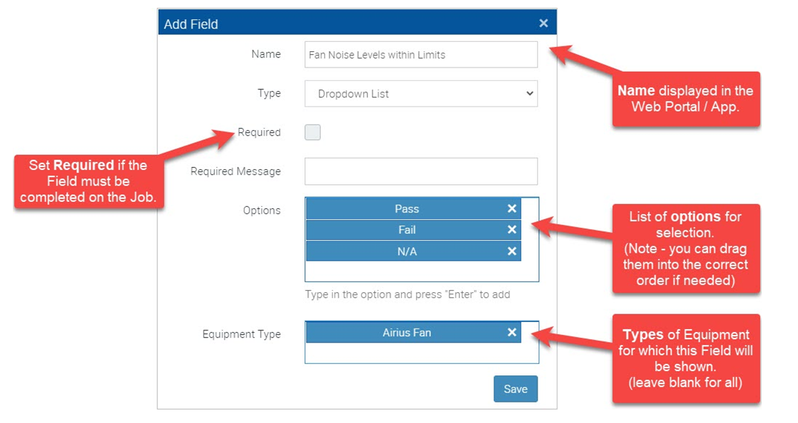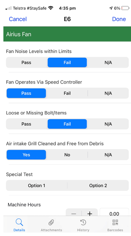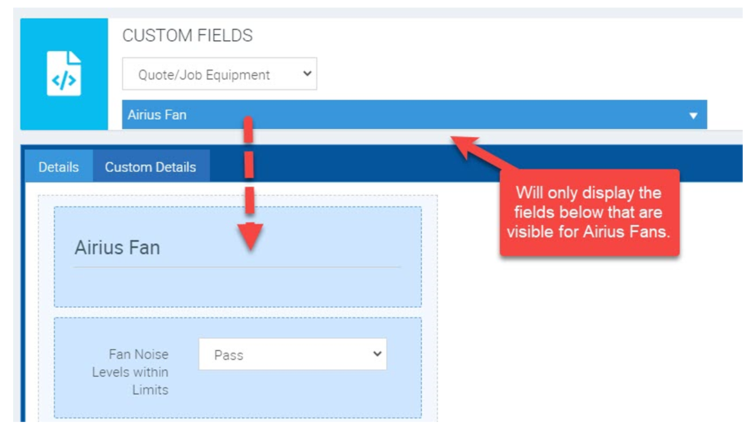 In the example above we are only showing the Custom Fields that would be displayed when the Equipment Type is “Airius Fan”.  This is then exactly how these are displayed on the web or mobile apps.