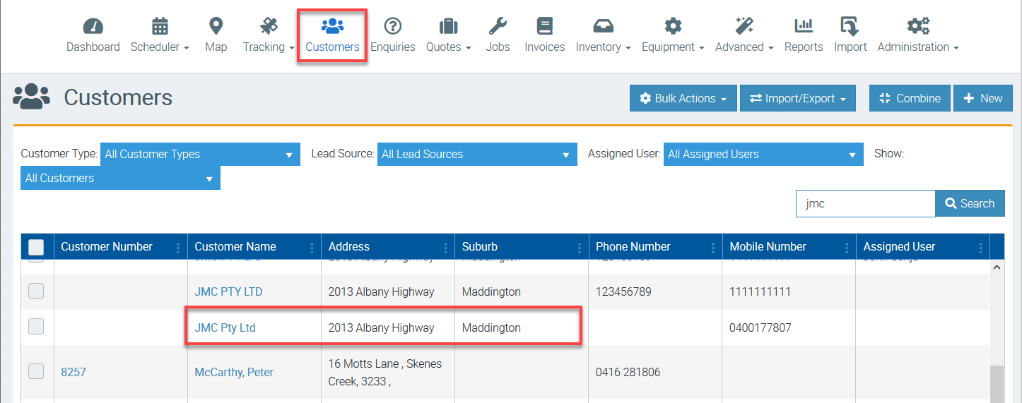 Click on the Customer Name to access the details.