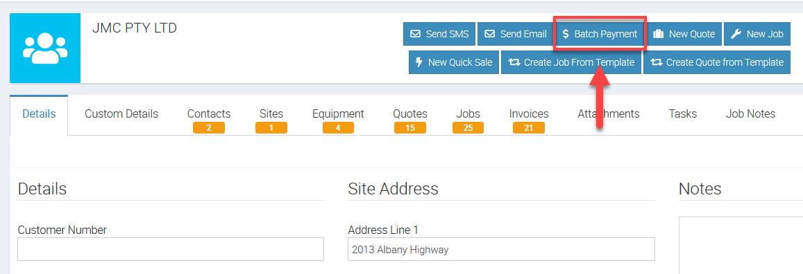 2. From the Customer Details screen, click Batch Payment.