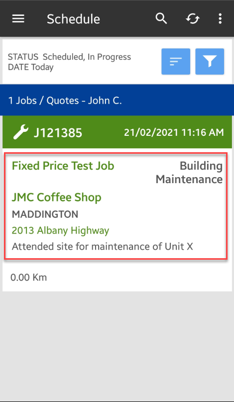 1. Access the job details screen from your Mobile App either by searching for the Job number or by going to Jobs menu.