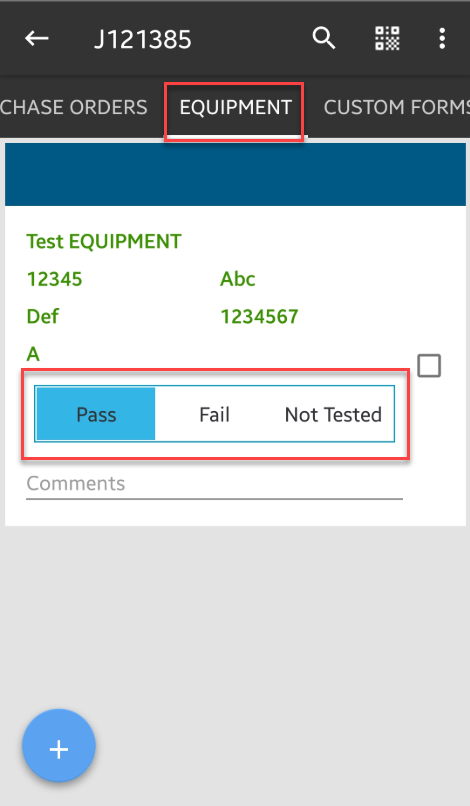 2. Go to Equipment tab and you can immediately see the pass and fail or not tested buttons.