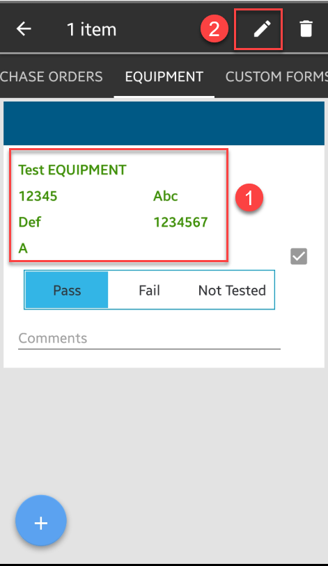 1. You can also tap on the Equipment Name and then tap on the Pencil icon to access more details and menus.